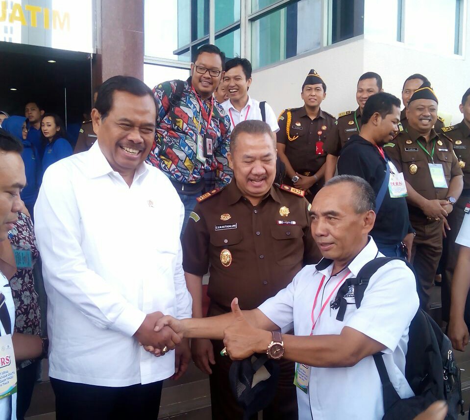 SURABAYA, {DETEKTIFNews.com}-Jaksa Agung HM Prasetyo bersama ketua umum Ikatan Adhyaksa Dharmakarini (IAD) Ros Ellyana Prasetyo hadir meninjau pelaksanaan bakti sosial operasi katarak yang digelar di Kantor kejaksaan Tinggi (Kejati) Jatim, jalan Ahmad Yani Surabaya, Sabtu (24/3/2018).