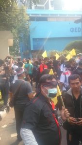 Aksi masa yang dipimpin Koordinator Lapangan Feri Rusdiono dari Ikatan Penulis Jurnalis Inonesia kemudian menggiring peserta aksi damai ke gedung Pengadilan Negeri Jakarta Pusat untuk memberi dukungan moril kepada Majelis Hakim yang sedang menyidangkan perkara gugatan Perbuatan Melawan Hukum yang dilayangkan Ketua Umum DPP Serikat Pers Republik Indonesia Hence Mandagi dan Ketua Umum DPN Persatuan Pewarta Warga Indonesia Wilson Lalengke.