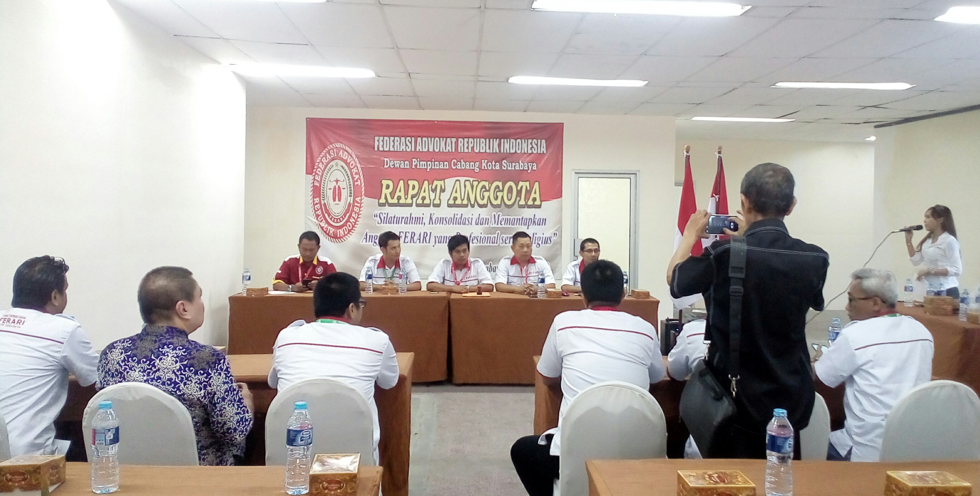 Dengan tujuan mengadakan Rapat anggota, untuk membentuk Restruktur Susunan pengurus baru Cabang kota Surabaya. Dimana, Sebelum rapat anggota dimulai, beberapa kata sambutan maupun informasi berupa susunan pengurus DPD FERARI Jatim, seperti yang di sampaikan ketua DPD FERARI Jatim yakni Heri Basuki, SH, MH, didampingi pengacara senior Robert Mantinia, SH, MH, dan pengurus daerah lainnya.