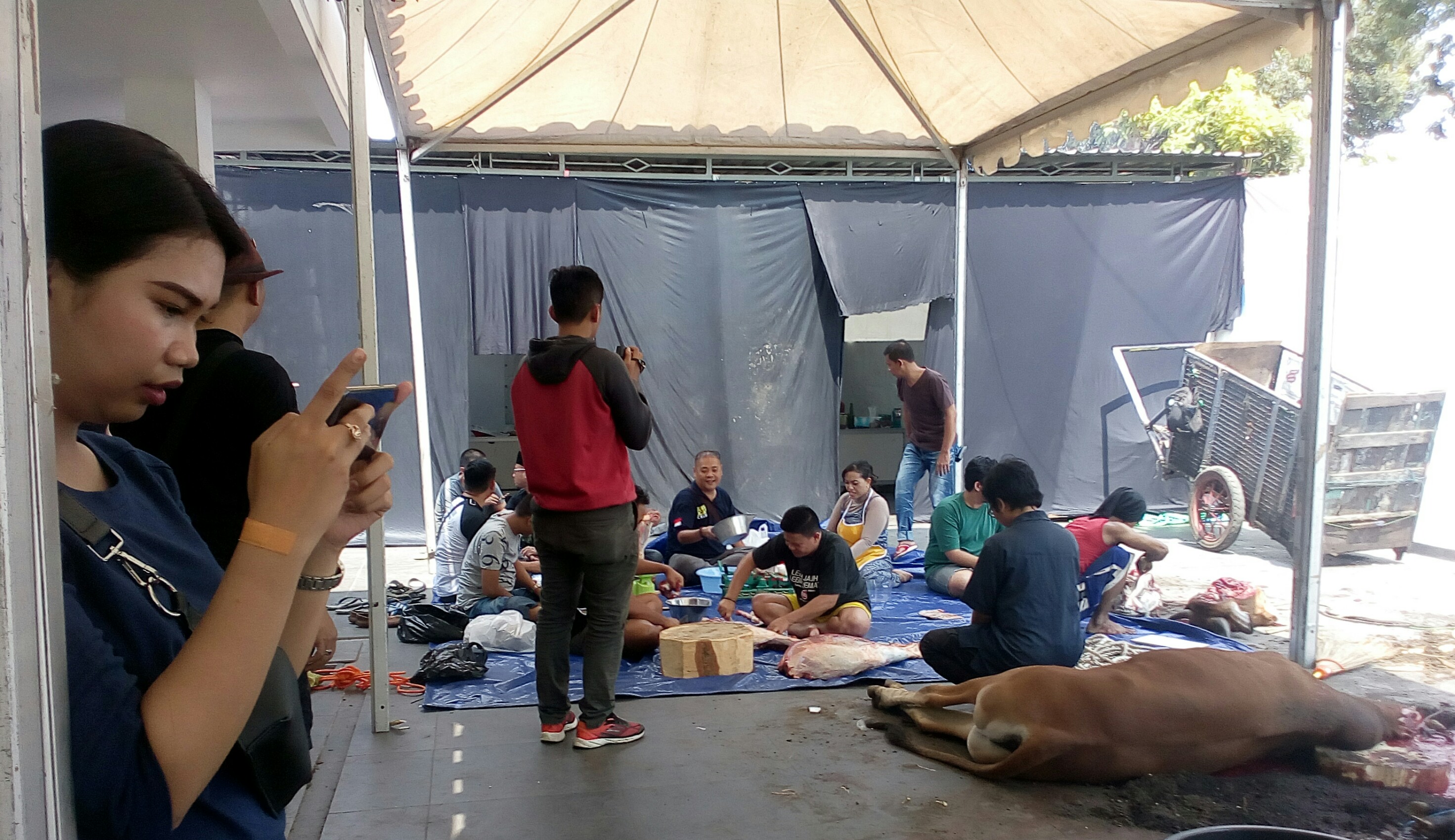 Dimana, pemotongan hewan dimulai sejak pagi hari dengan di bantu oleh sejumlah pegawai.