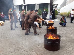 Sementara dalam pemusnahan barang bukti kejahatan yang diperoleh dari berbagai perkara ini, antara lain kasus narkotika dan perjudian.