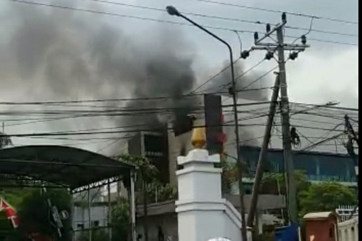 Penuturan saksi mata di lokasi, kebakaran pertama kali diketahui dari asap yang membumbung tinggi dari ruangan tersebut.