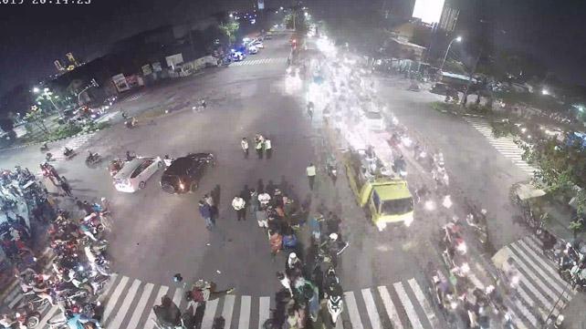Situasi kecelakaan di pereampatan Jl. Demak-Dupak, Surabaya.