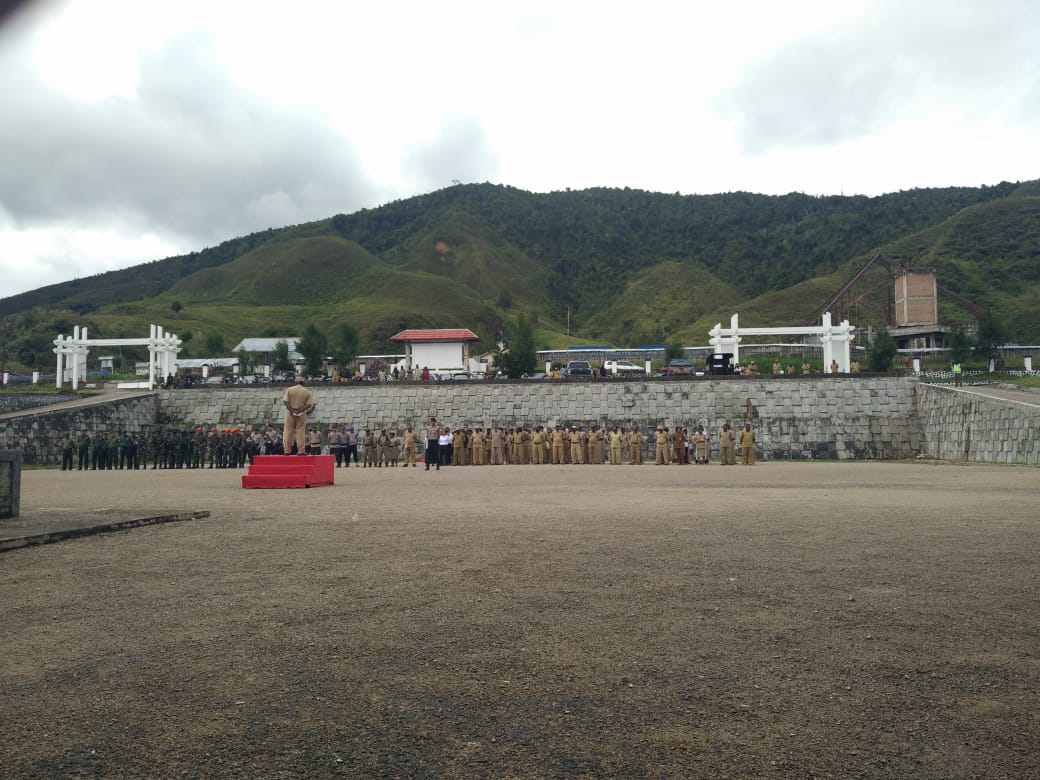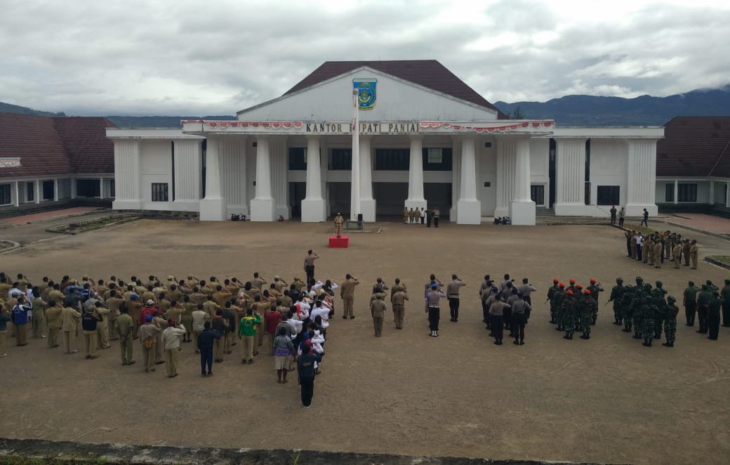 PAPUA, {DETEKTIFNEWS.com}-Acara Kegiatan apel gabungan yang di laksanakan ¹ Senin ( 18/3/19 ) Pukul 08.40 WIT, bertempat di halaman Kantor Bupati Paniai, Jl. Poros Madi, Distrik Paniai Timur, Kab. Paniai, telah di laksanakan “Apel Gabungan TNI/POLRI bersama ASN Kab. Paniai” dipimpin oleh Bpk. Amatius Tatogo (Sekda Kab. Paniai) diikuti sekitar 300 Orang.