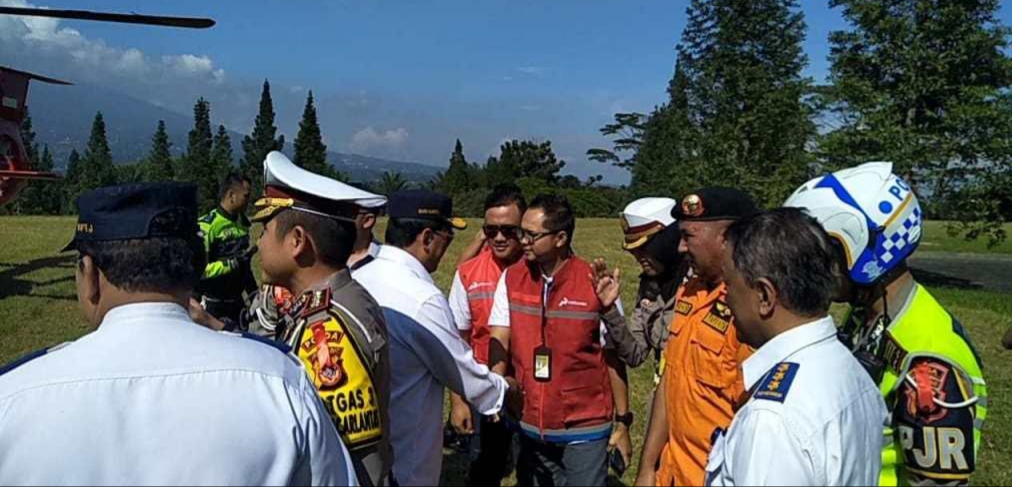 Menteri Perhubungan Budi Karya Sumadi bersama Basarnas melakukan pemantauan dari puncak bogor.