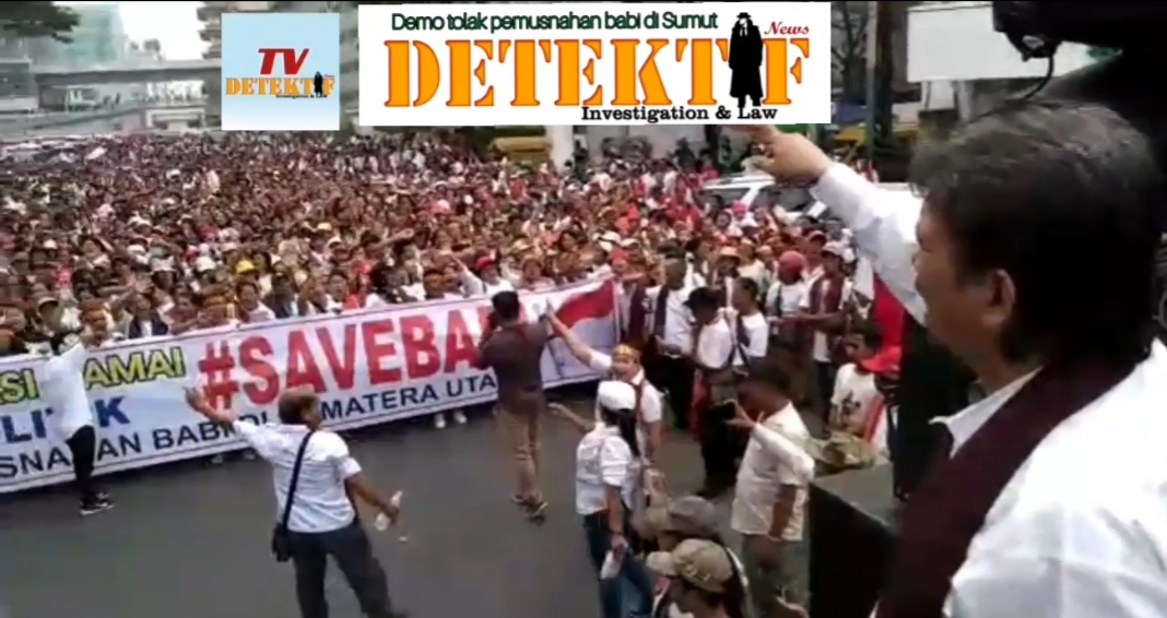“Kami menentang keras pemusnahan babi, karena kalau babi dimusnahkan berarti sudah menghilangkan budaya Batak. Karena sejak lahir sampai mati, babi jadi budaya di tanah Batak,” tegas pendemo.