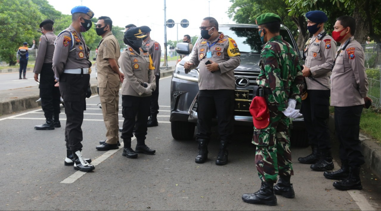 SURABAYA, {DETEKTIFNEWS.com}-Kapolda Jatim Irjen Pol Drs.Luki Hermawan, M.Si dihari ketiga adanya pemberlakuan PSBB di Surabaya Raya dan dalam giat penanganan dilapangan, beliau langsung melakukan pengecekan dibeberapa tempat Pos Check Point diantaranya :