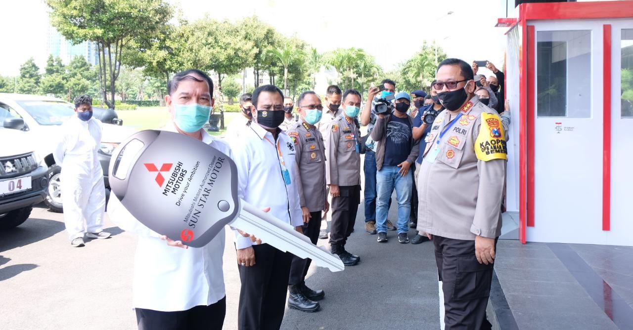 SURABAYA, {DETEKTIFNEWS.com}-Kapolda Jatim Irjen Pol Drs.Luki Hermawan, M.Si menerima Hibah 5 Unit mobil Double Cabin dari Pemerintah Provinsi Jatim yang dilakukan didepan Lobby gedung Tribrata Mapolda Jatim, Senin 4 Mei 2020, pukul 10.00 wib.