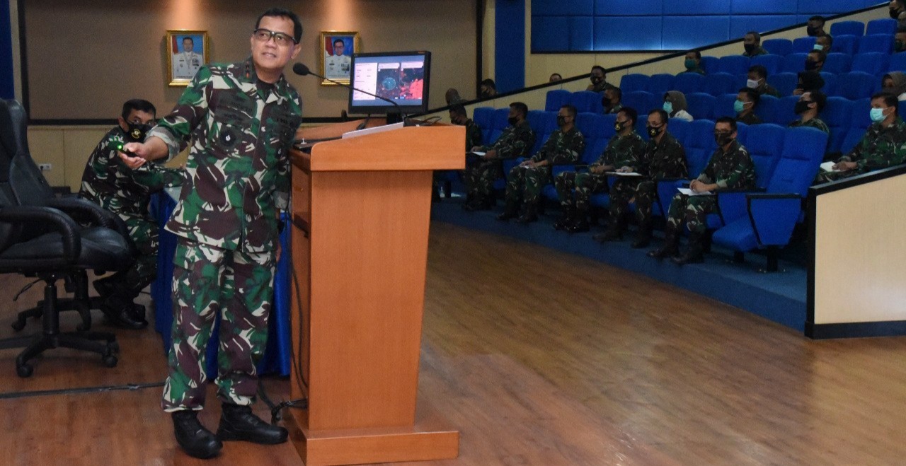 SURABAYA-paradigmaindonesia- Sehari menjelang pelaksanaan Ujian Sidang Skripsi, Gubernur Akademi Angkatan Laut (AAL) Laksda TNI Edi Sucipto, S.E.,M.M. memberikan pengarahan kepada seluruh Dosen Pembimbing dan Penguji Skripsi Taruna AAL yang digelar di Auditorium Mandalika, Komplek Ki Hadjar Dewantara, Mako AAL, Kesatrian Bumimoro, Surabaya, Selasa (26/5).