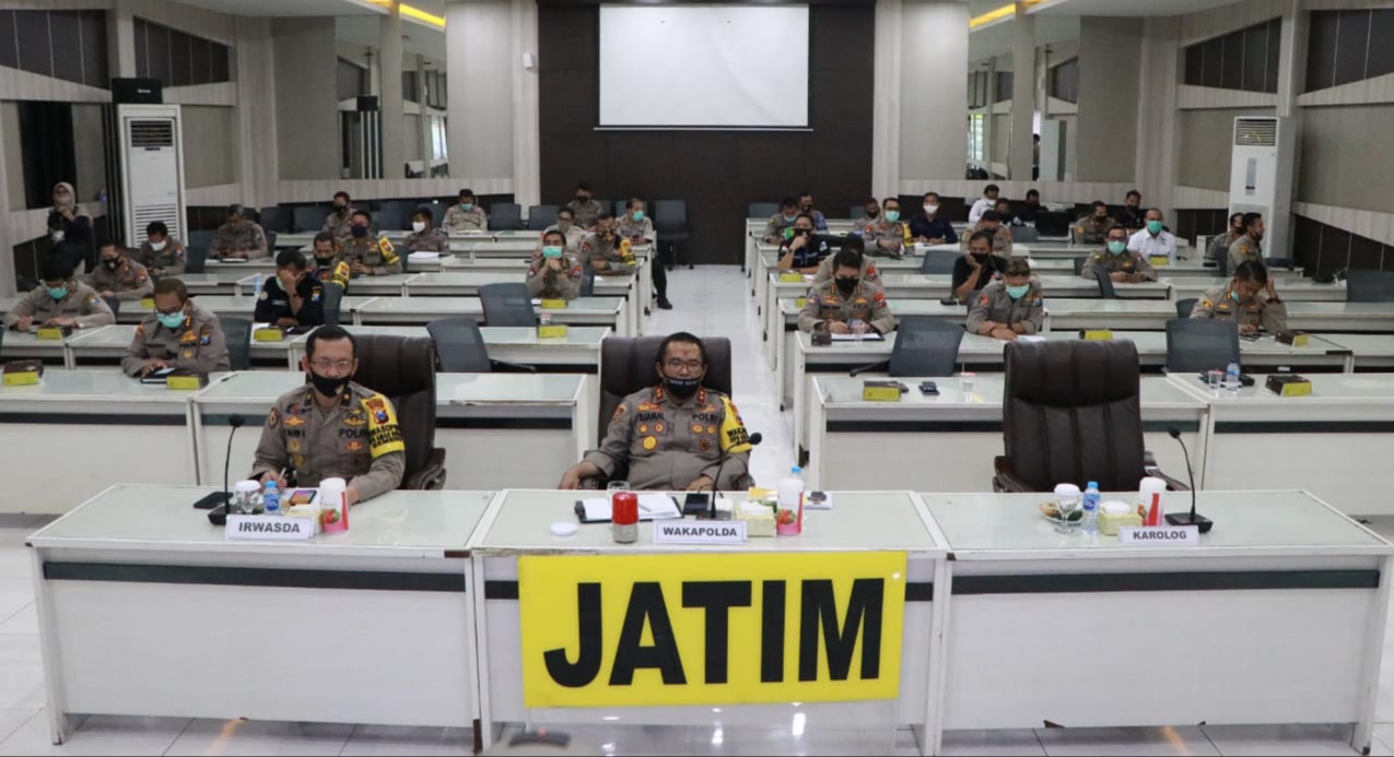 Video Conference yang diikuti oleh semua Kasatker yang ada di lingkungan Polda Jatim dan Polres Jajaran Polda Jatim.