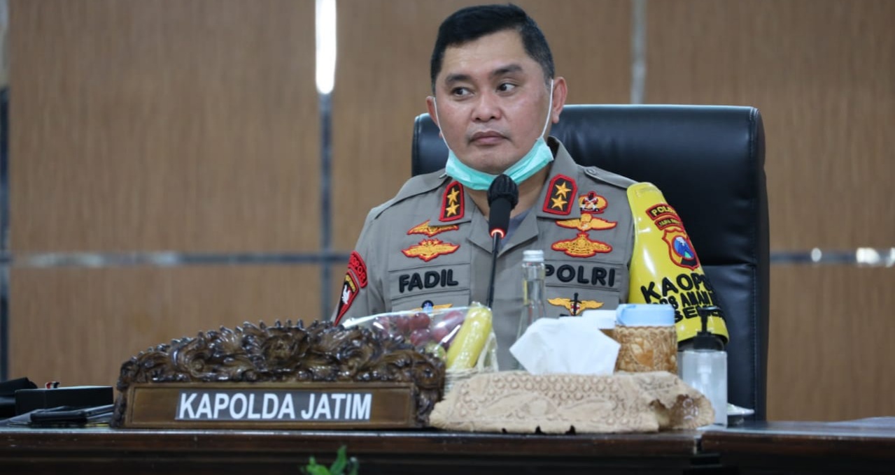 SURABAYA-Kapolda Jatim Irjen Pol Dr. M. Fadil Imran, M.Si memimpin langsung rapat Analisa dan Evaluasi (Anev), dalam pelaksanaan masa transisi menuju New Normal di wilayah Malang Raya, yang meliputi, Kota Malang, Kota Batu dan Kabupaten Malang.