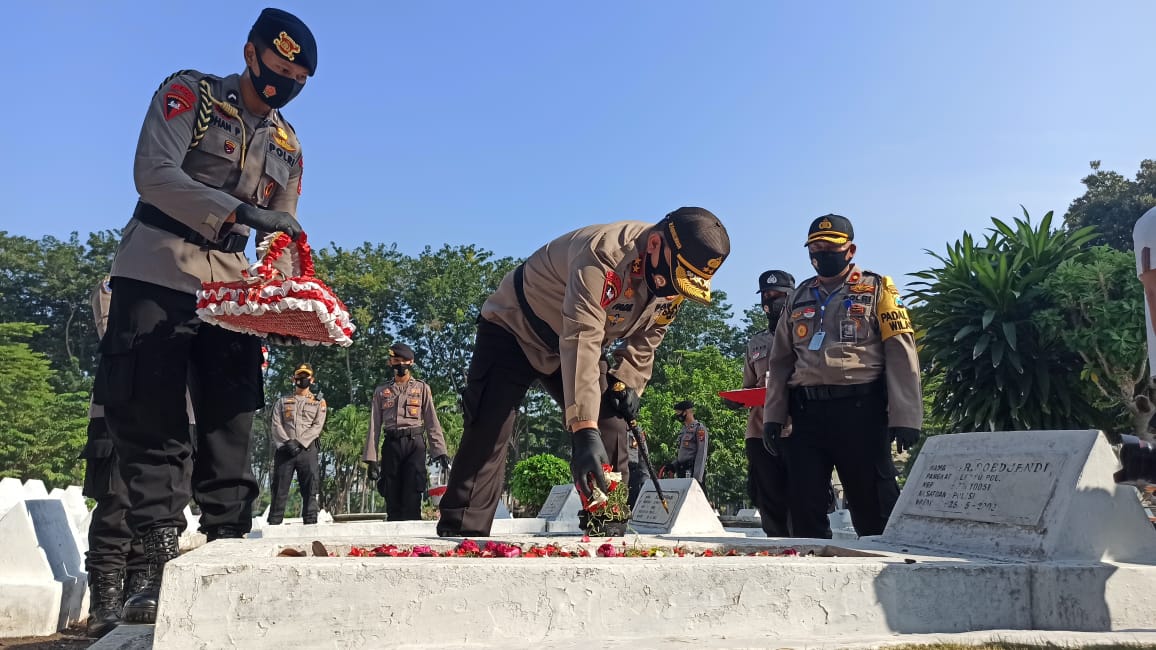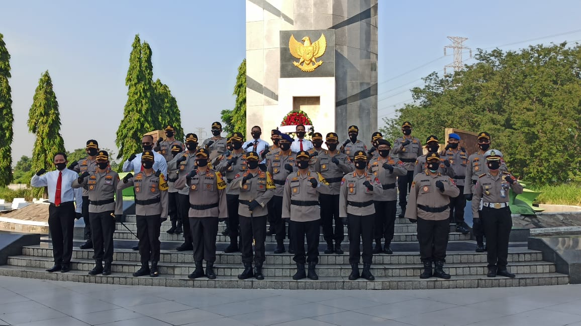 Dalam memperingati HUT ke 74 Bhayangkara Th 2020, Kepolisian Daerah Jawa Timur (Polda Jatim) melakukan ziarah di Taman Makam Pahlawan 10 November, Jl. Mayjen Sungkono Surabaya.