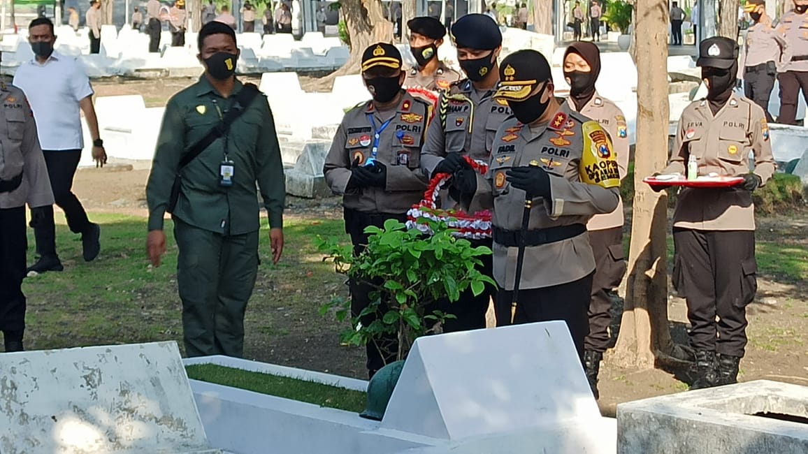 ” Ziarah kali ini sebagai bagian dari rangkaian perayaan HUT ke-74 Bhayangkara pada 1 Juli 2020. Kami kemari untuk mendoakan para pendahulu dan mengenang jasa-jasa para pahlawan saat memperjuangkan kemerdekaan Indonesia,” kata Kapolda Jatim.