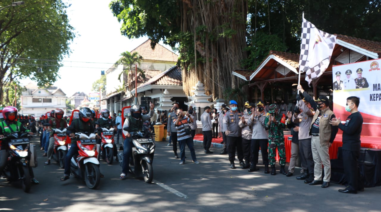 Wakapolda Jatim dan Forkopimda Kabupaten Gresik, melaunching pengemudi Ojek Tangguh, baik Ojek Online dan Ojek konvensional (Pangkalan).