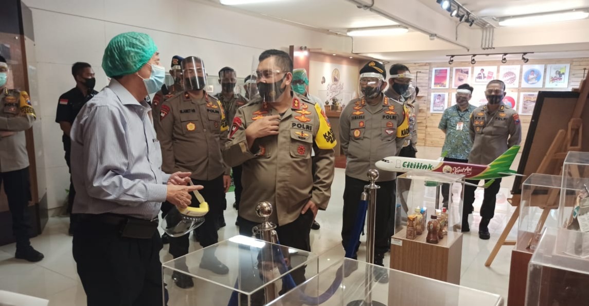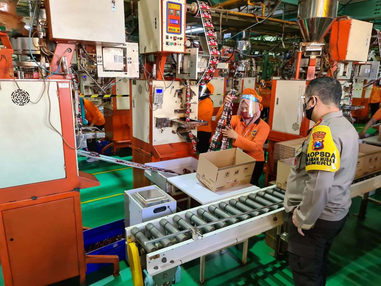 SURABAYA-Kapolda Jatim Irjen Pol Dr. M. Fadil Imran, M.Si bersama Wakapolda Jatim Brigjen Pol Drs. Slamet Hadi Supraptoyo didampingi Pejabat Utama Polda Jatim dan Kabid Humas Polda Jatim Kombes Pol Trunoyudo Wisnu Andiko, S.I.K mengunjungi di Industri Tangguh, produk Kapal Api PT. Santos Jaya Abadi di Jalan Raya Gilang no.159 Kecamatan Taman, Kabupaten Sidoarjo, Jumat 17 Juli 2020.
