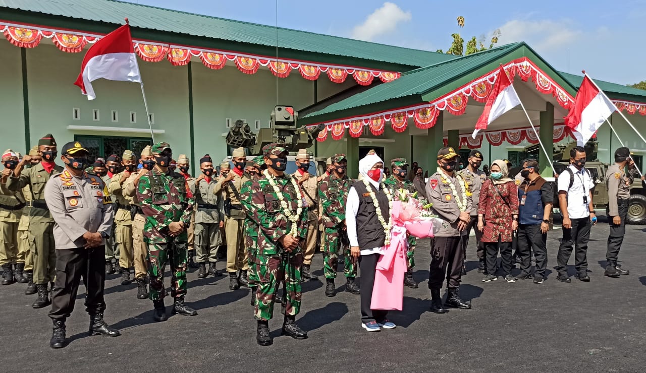 Dalam gelar giat pencanangan peran TNI-POLRI penanganan covid19, yang dilaksanakan di Batalyon Arhanudse, Gedangan, Sidoarjo. Kamis pagi, 13 Agustus 2020.