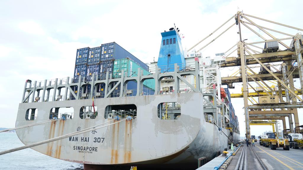 MV. Wan Hai 307 Perdana Kunjungi TPS Menggantikan TPI Service