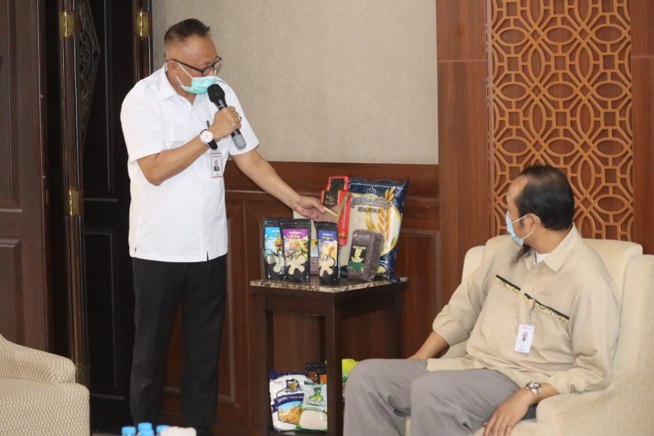 SURABAYA-Kapolda Jatim Irjen Pol Dr. M. Fadil Imran, M.Si didampingi Pejabat Utama Polda Jatim dan Kabid Humas Polda Jatim Kombes Trunoyudo Wisnu Andiko, S.I.K saat menerima Audiensi jajaran Direksi/Pimpinan Bulog wilayah Jatim, di Lobby Tribrata lantai 2 Mapolda Jawa Timur, Senin 28 September 2020.