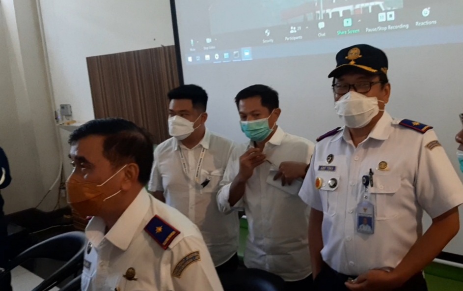 Capt Sudiono KaSyahbandar Uatama Tanjung Perak bersama Faruk Dirut Terminal Teluk Lamong di belakang tengah, saat di konfirmasi wartawan.