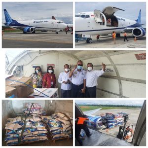 “Penerbangannya menggunakan Trigana Air untuk jenis tipe Boeing 737 – 300 kapasitas 14 Ton ke Wamena dan Subsidi Perintis dengan Pesawat jenis tipe Caravan Susi Air untuk ke beberapa Distrik di wilayah pegunungan Kabupaten Mimika yaitu Awarnop, Alama dan Zila.