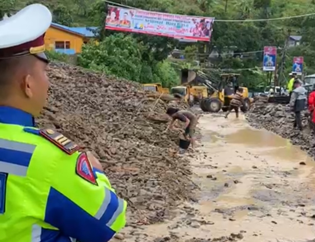 “Kami sudah bekerjasama dengan pihak terkait untuk membersihkan material longsor dan bisa dilalui sistim buka tutup,” kata Kasat Lantas dalam sebuah video yang beredar.