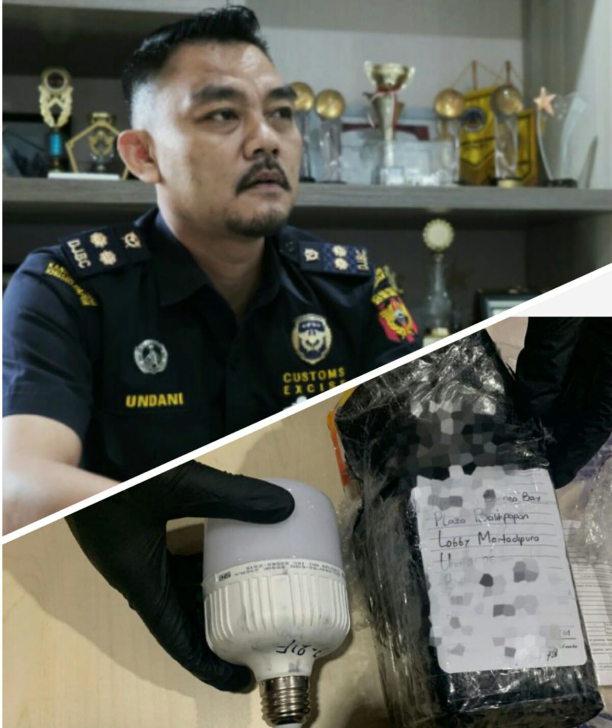 Lanjut Undani lagi, kemudian dilakukan pemeriksaan terhadap barang kiriman tersebut dengan cara pindai ulang per paket atas kantong barang kiriman yg dicurigai tersebut. Lalu diamankan 3 paket yang diberitahukan lampu, dan 1 paket diberitahukan aksesoris. Selanjutnya, dilakukan pemeriksaan fisik dengan cara dibuka dan disaksikan oleh kuasa barang.