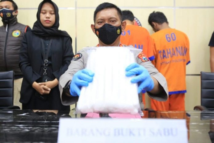 SURABAYA-Ditresnarkoba Polda Jatim, berhasil menangkap 2 orang kurir narkoba jenis sabu seberat 6 kilogram jaringan Madura.