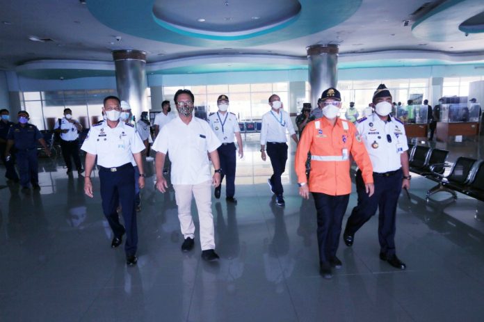 Dalam tinjauan tersebut, Cris Kuntadi memastikan pengetatan protokol kesehatan di masa libur Natal dan Tahun Baru (Nataru) 2021/2022 di Terminal Penumpang Gapura Surya Nusantara, Pelabuhan Tanjung Perak diterapkan dengan baik di lapangan.