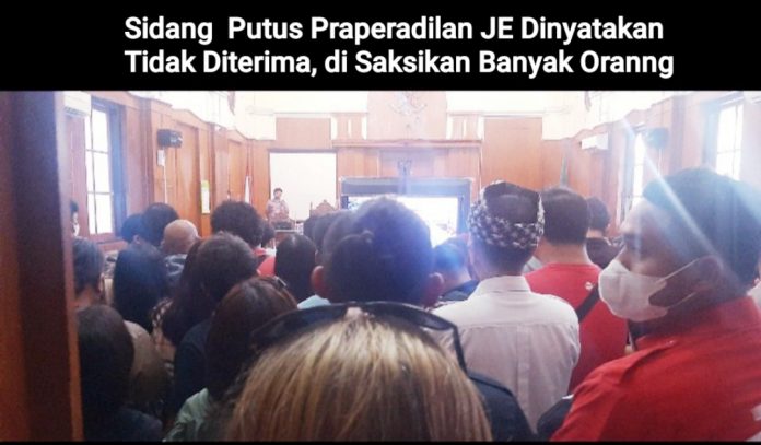 SURABAYA-Sidang agenda putusan perkara gugatan Praperadilan yang diajukan Julianto Eka Putra (JE) pemilik sekolah Selamat Pagi Indonesia (SPI), berskhir dengan putusan Niet Ontvankelijke Verklaard (N.O.V/Dinyatakan Tidak Dapat Diterima (DTDD), oleh Hakim tunggal Martin Ginting,SH,MH diruang sidang Cakra PN Surabaya, Senin (24/1-22).