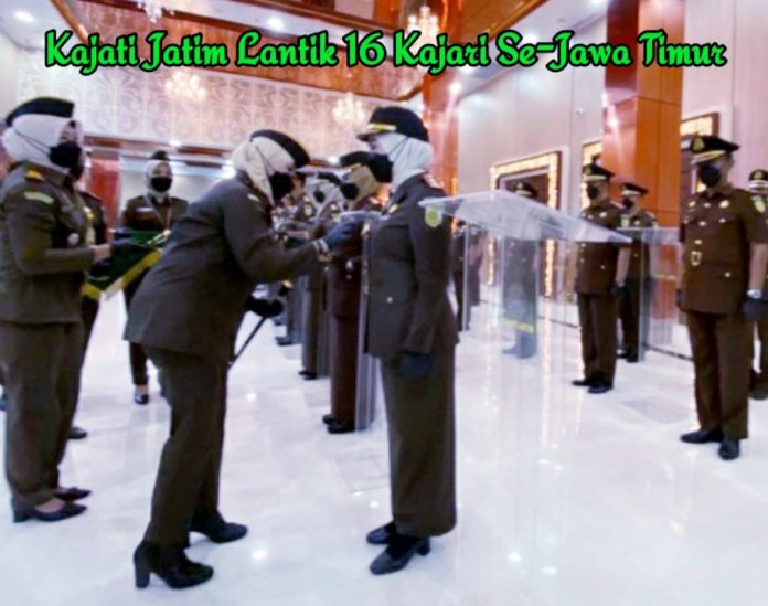 SURABAYA – Kepala Kejaksaan Tinggi (Kajati) Jawa Timur (Jatim), Mia Amiati melantik 16 Kepala Kejaksaan Negeri (Kajari) se-Jatim di Aula Gedung Kejati Jatim Jalan Ahmad Yani, pada Rabu (9/3/2022).