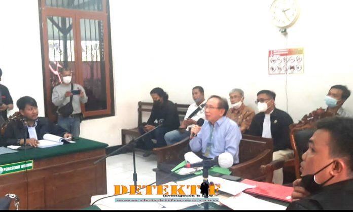 “Saya maunya tanah kembali pak, Tanah itu pemanfaatannya untuk gudang pak,”ujar Wenas Panwell menyampaikan kesaksiannya pada hakim ketua Suparno.