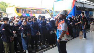 Salah satu staff HSSE Pelindo Sub Regional Jawa, Mas Sis memberikan arahan kepada peserta kunjungan untuk mematuhi SOP kesehatan dan keselamatan kerja (K3) selama kunjungan lapangan berlangsung serta himbauan untuk tetap menggunakan masker saat berada dilokasi Terminal Penumpang. Kunjungan industri ini dihadiri kurang lebih sebanyak 300 mahasiswa dan 10 dosen pembimbing. Rizki Hesa Sampurna selaku Dekan Universitas Muhammadiyah Sukabumi menyampaikan rasa terima kasihnya kepada Pelindo Sub Regional Jawa karena telah diterima dengan baik.