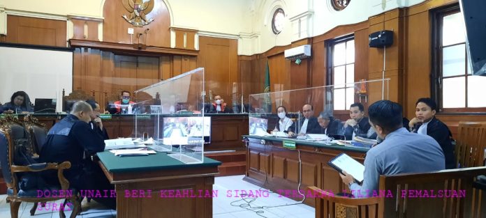 SURABAYA-Dosen hukum Universitas Airlangga (Unair) Dr.Ghansam Anand,SH,M.Kn, dihadirkan Jaksa Penuntut Umum (JPU) Darwis, sebagai ahli perdata saat sidang terdakwa Liliana Herawati dalam perkara pemalsuan surat, di Pengadilan Negeri (PN) Surabaya. Selasa (11/7) diruang sidang Cakra.