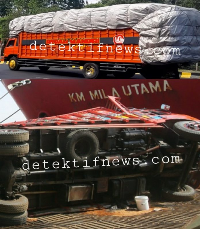 Truk ODOL Terbalik saat menaiki Ramp Door Kapal Ro-Ro di Pelabuhan Tanjung Perak.