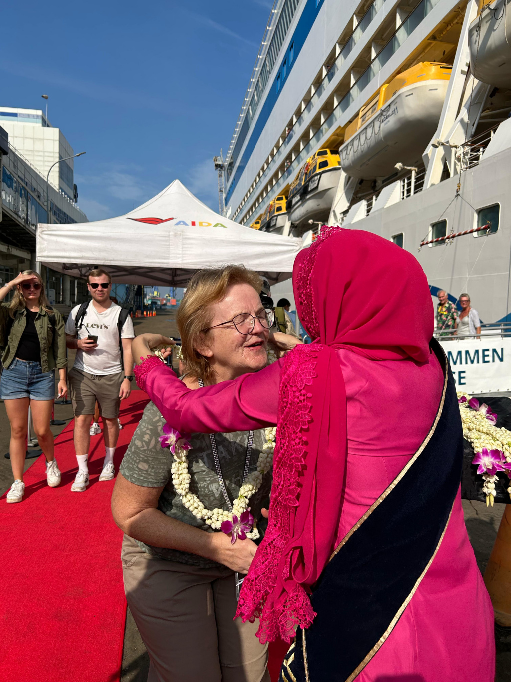 Ali Sodikin selaku Sub Regional Head Jawa PT Pelabuhan Indonesia (Persero) Sub Regional 3 Jawa turut memberikan cinderamata dan menyematkan udeng khas Jawa Timur serta melakukan pengalungan bunga kepada Capt.Patrick. Ali Sodikin juga memberikan kalimat selamat datang serta memberikan penjelasan seputar wisata dan tempat-tempat iconic di kota Surabaya. Hal tersebut mendapatkan respon yang sangat baik dan antusias dari para crew kapal terutama Capt.Patrick yang terlihat sangat sumringah saat menggunakan udeng tersebut dan mengajak Ali dan Tim berkeliling untuk melihat berbagai fasilitas di dalam kapal pesiar MV.Aidabella.