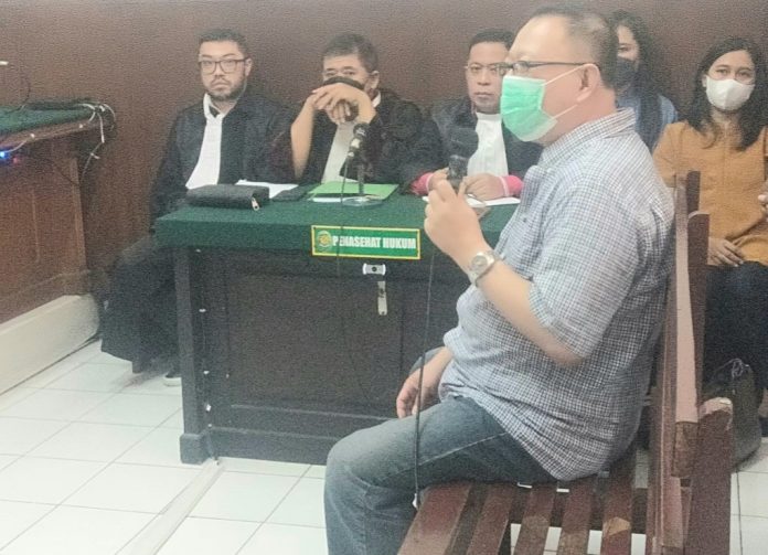 Mantan Direktur Komersil Bank Prima Agustinus sebagai saksi di Pengadilan Negeri (PN) Surabaya di Ruang Sari 3.