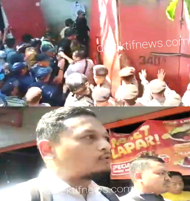 Setelah berjalan cukup alot dan sempat terjadi saling dorong, juru sita akhirnya berhasil masuk ke dalam bangunan.