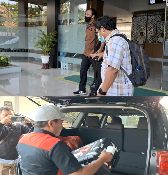 Di lokasi, sekira pukul 15.54 WIB, sejumlah petugas terlihat membawa hasil penggeledahan, usai mengobok-obok kantor dinas plat merah tersebut.