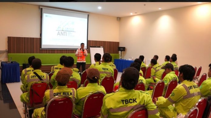 SURABAYA-Tenaga kerja lasher untuk kegliatan pelayanan kapal petikemas dan tenaga bantu curah kering (TBCK) sejumlah 259 orang mendapatkan sosialisasi Safety Awareness dari PT Terminal Teluk Lamong (TTL) yang dibagi menjadi 7 group selama bulan November ini, kegiatan serupa juga dilakukan serentak oleh terminal – terminal dibawah PT Pelindo Terminal Petikemas di seluruh Indonesia.