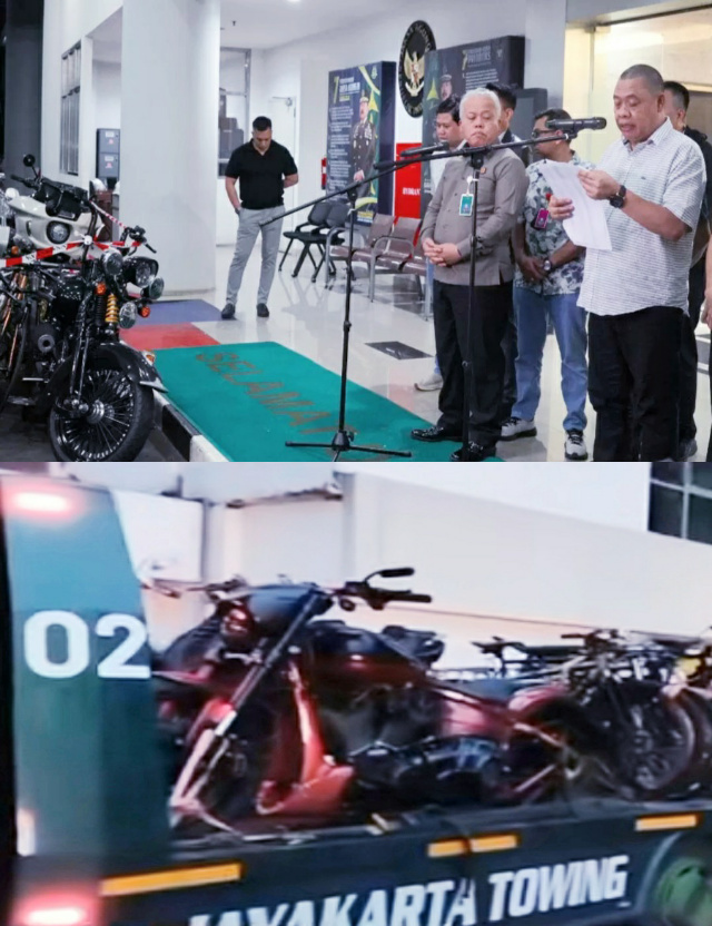 Tidak hanya mobil, penyidik menyita pula 21 sepeda motor mewah dari berbagai merek, di antaranya Harley Davidson dan Triumph, serta tujuh sepeda.