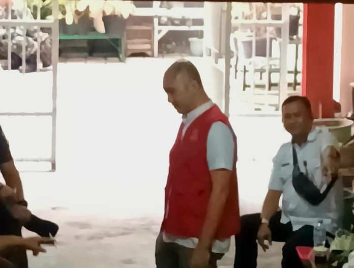 Dengan ahanan berwarna merah kejari Surabaya dan dikawal ketat oleh Jaksa Penuntut Umum (JPU), Royce digiring ke ruang sidang Sari 3 untuk menjalani sidang perdana.