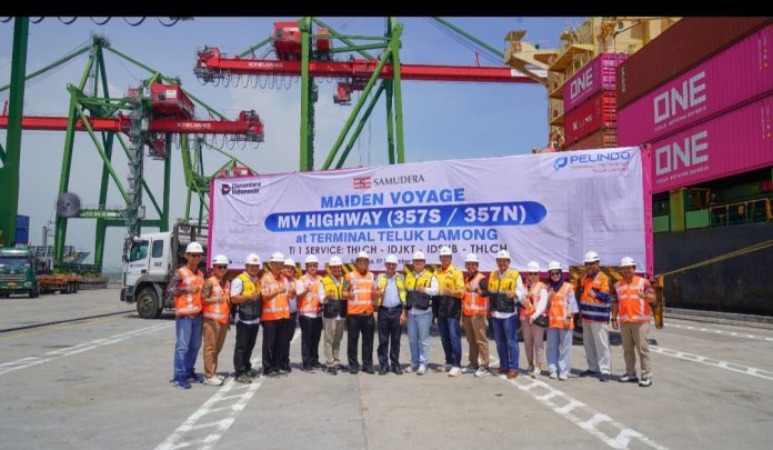 SURABAYA-PT Terminal Teluk Lamong (TTL) menyambut kedatangan perdana (maiden voyage) MV Highway 357S/357N di dermaga internasional Terminal Petikemas Teluk Lamong pada Jumat pagi. Kapal milik Samudera Shipping Line (SSL) ini melayani Service TI1 dengan rute Laem Chabang – Jakarta – Surabaya – Laem Chabang. Layanan TI1 juga diikuti oleh Ocean Network Express (ONE) melalui skema joint slot agreement, di mana ONE mengangkut muatan kontainernya dalam pelayaran kapal yang dioperasikan oleh SSL. 8 Nopember 2025.