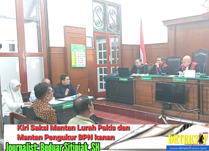 Majelis Hakim memperjelas kepada Saksi Mantan Lurah Pakis, Mana yang lebih dulu ada pengukuran tanah pihak penggugat antara Taman Makam Pahlawan pihak tergugat?, “duluan tanah Penggugat, karena Makam statuanya Hak Pakai Pak Hakim”, Tegas Saksi.