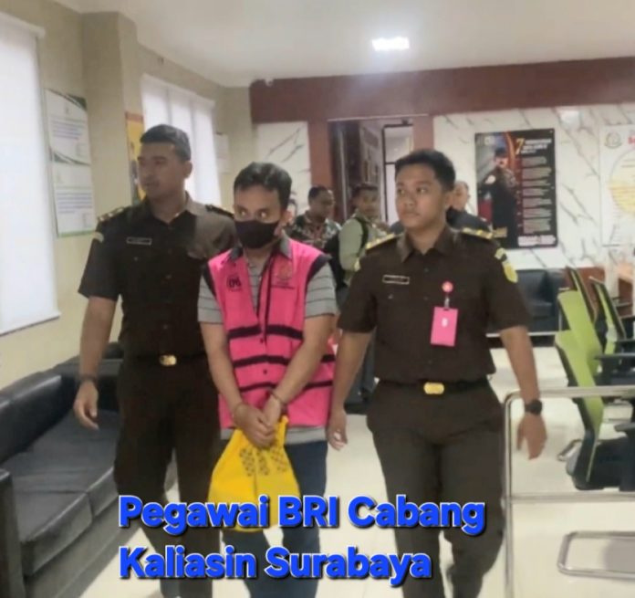 SURABAYA-Kejaksaan Negeri Surabaya Tahan seorang pegawai Bank Rakyat Indonesia (BRI) Cabang Surabaya Kaliasin berinisial WA dalam perkara dugaan korupsi yang ditaksir merugikan keuangan negara sebesar Rp.2,9 miliar.